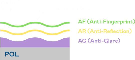 A.R.T.尊龙集团光电发展出独家的表面处理跟多层镀膜技术,,,,让外部光线照射到显示器表面时所产生的反射光大幅降低。。。。 |
