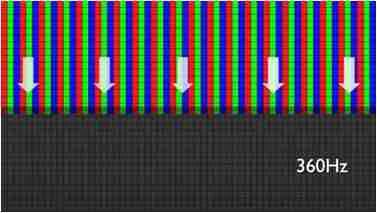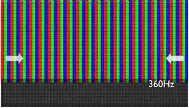 传统液晶驱动是从左到右单向进行,,,,在画面更新速度愈来越愈快的情况下,,位于驱动线路末端的右下角区域,,,,画素的闸极来不及在短时间内获得足够电压,,无法显示出正确的颜色资讯。。。。 |
