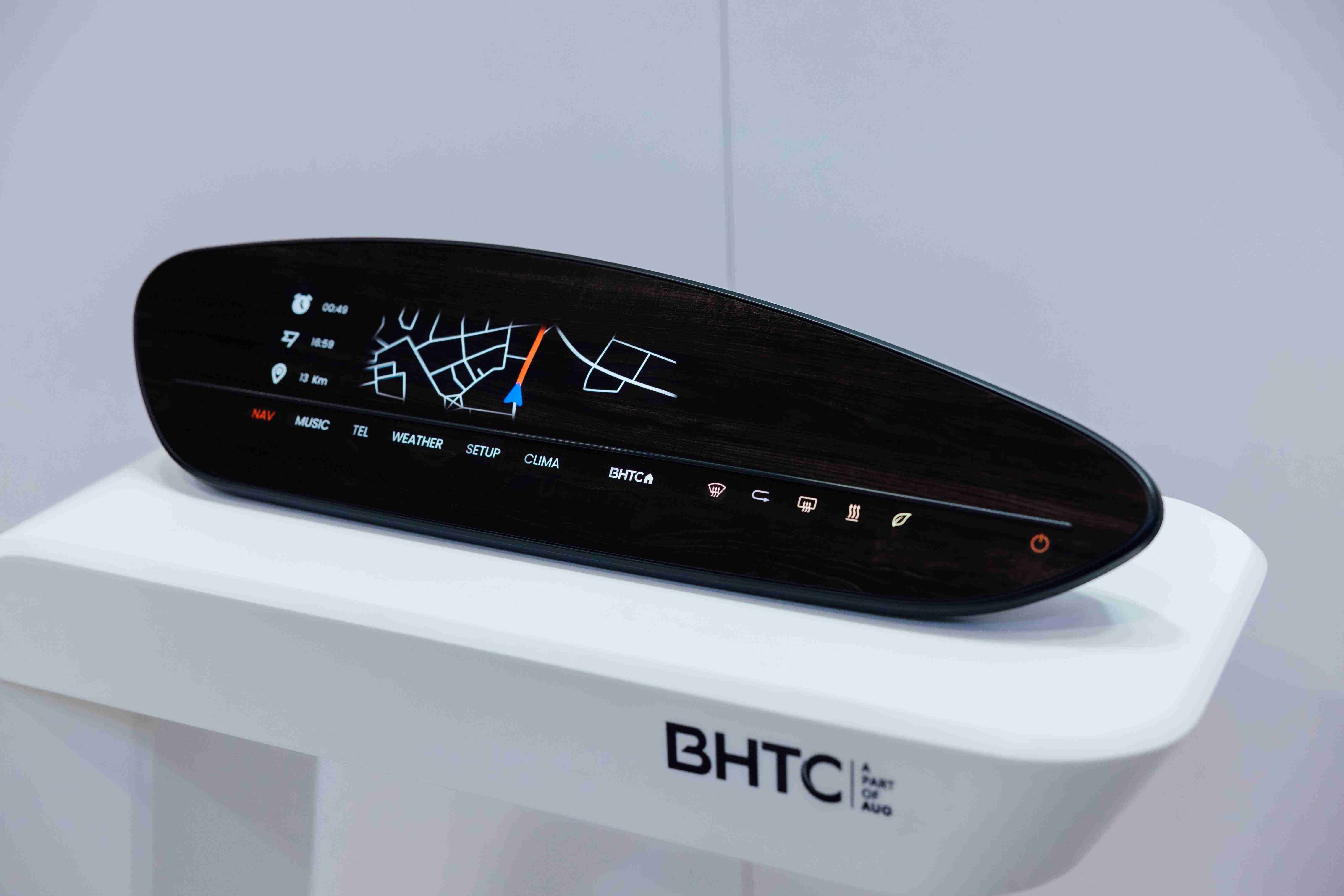 BHTC的木纹车用显示器(Display Behind Wood)将无缝木质表面与显示器结合后,,,可以融入车内设计中,,,,提供驾驶优质的视觉效果,,加上其无边框的设计和亮度调控,,创造更优质的车内体验。。。