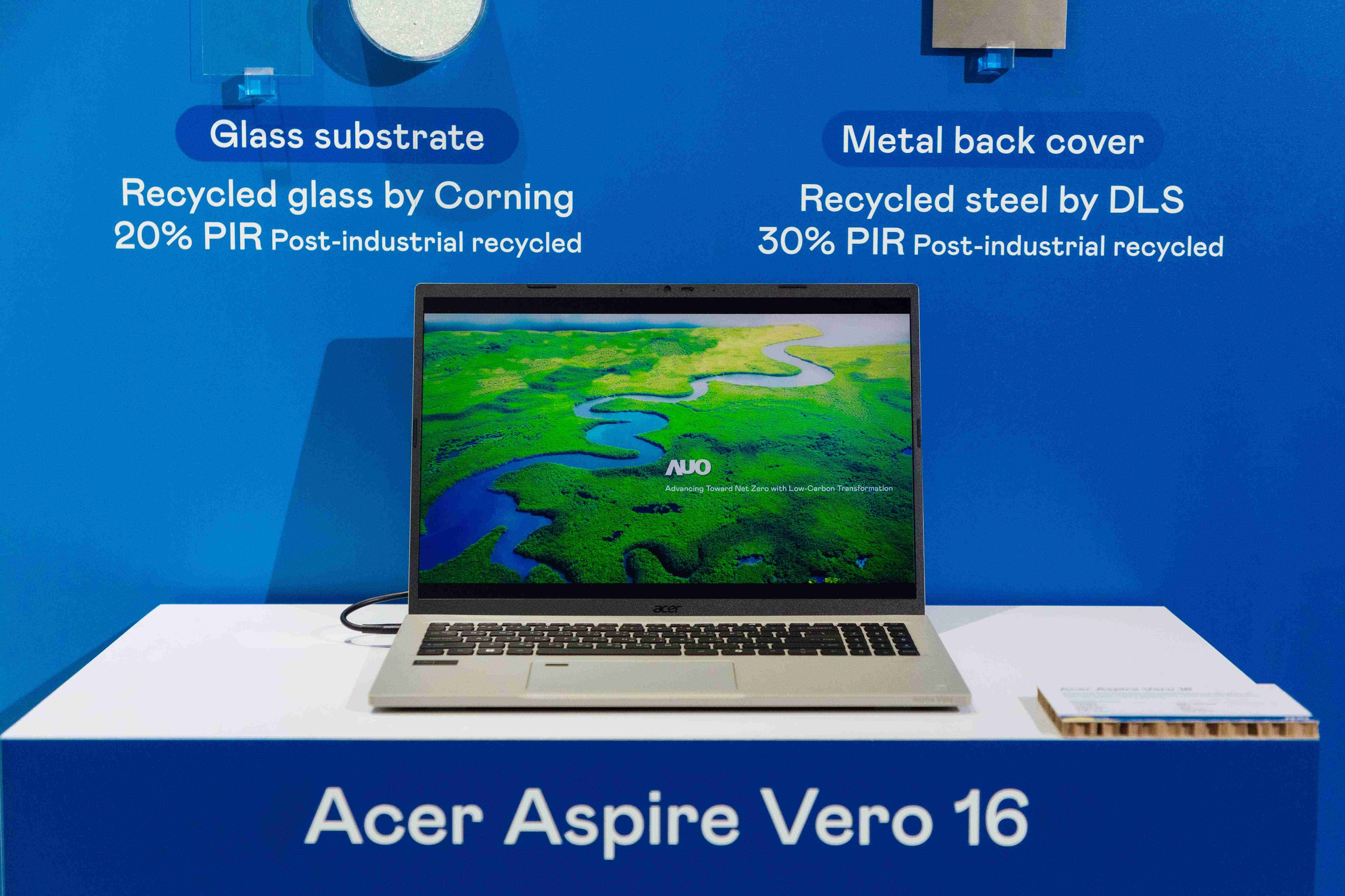 全球首款笔记型电脑采用尊龙集团100%绿电制造的面板,,结合PCR外亦使用工业后回收材料(PIR),,例如回收玻璃和金属,,减少对环境的影响。。。。