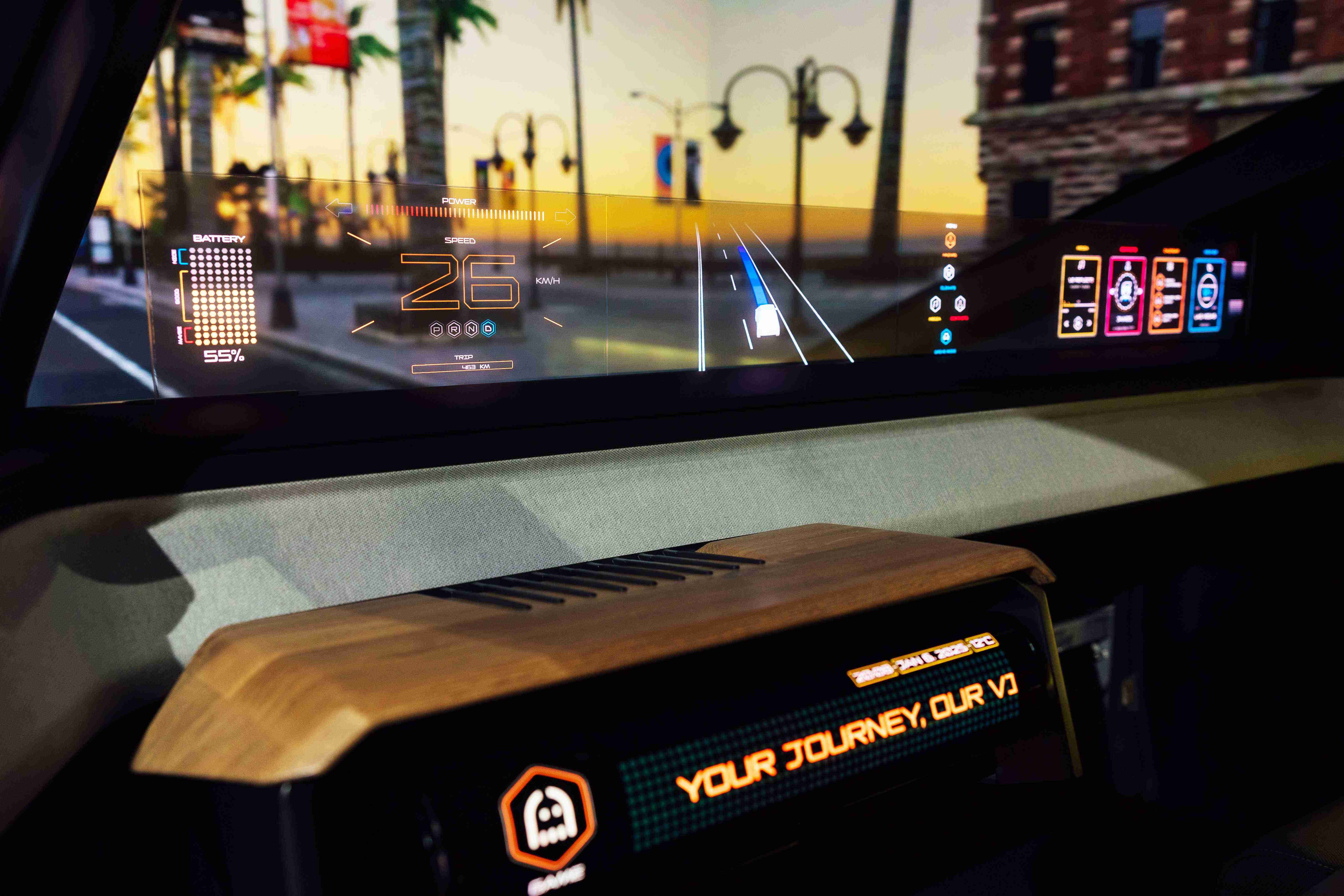 车用运算方案驱动无界透明显示介面(Horizon Image Glass),,,,整合仪表板、、中控及副驾显示功能为一体式全景呈现,,,不仅提供清晰的外部视野,,亦能即时显示车辆状态、、、导航及路况资讯,,,并赋予个性化设定与驾驶安全警示等加值化服务。。。